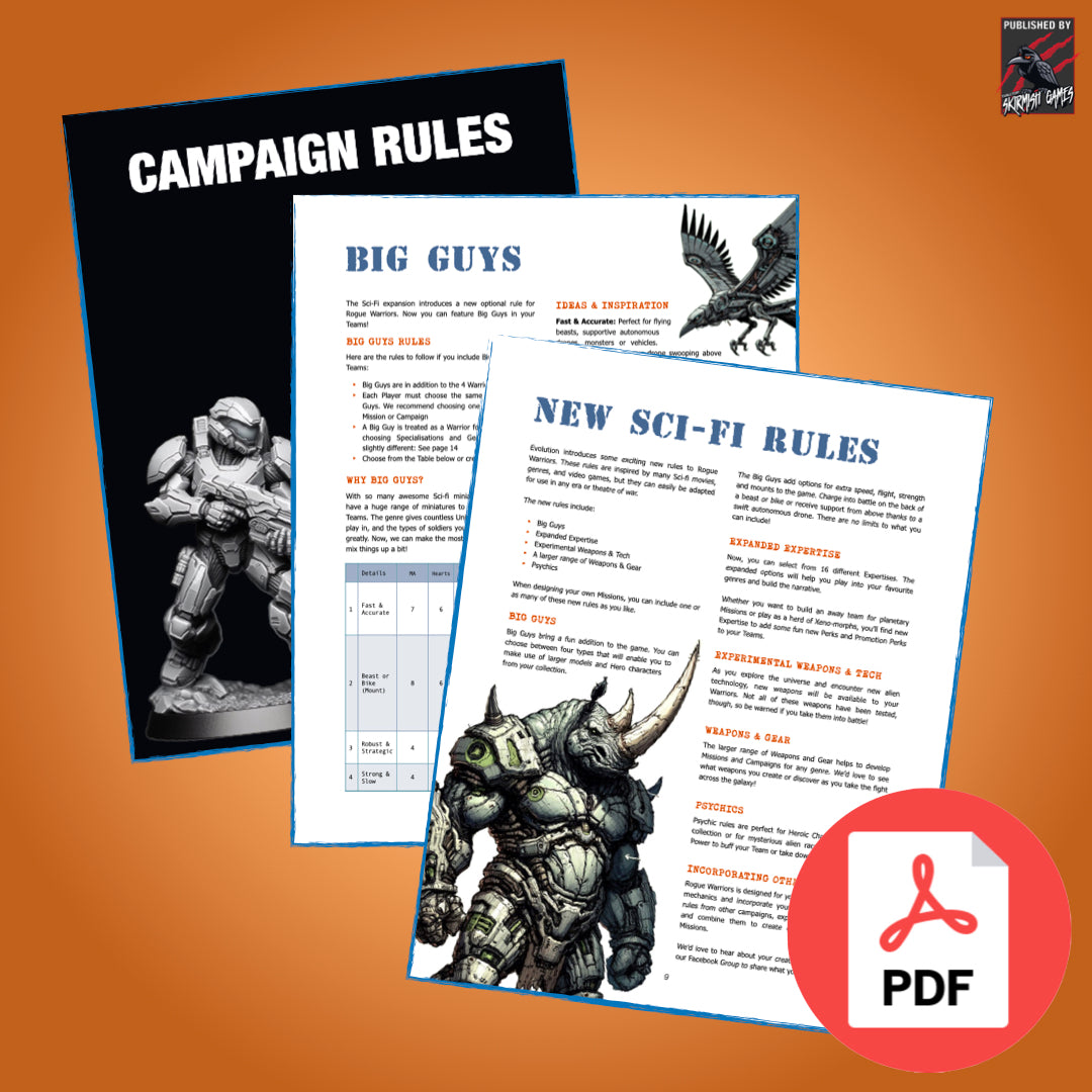 The Evolution supplement is all about giving you more options, more excitement, and more ways to enjoy Rogue Warriors. Every new rule and feature enhances and complements the core game without complicating it. Our goal is to keep gameplay fast, fun, and engaging while opening up a whole new realm of possibilities and narrative choices for your skirmish battles.