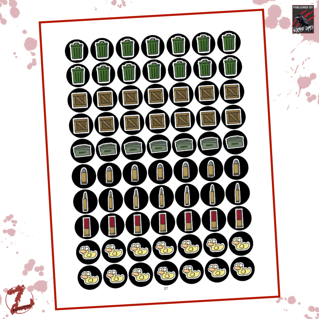This PDF is here to enhance your gameplay. You can find all the contents in the main Population Z Welcome to Huntsville and the Huntsville Assets Books, but these individual PDFs are for when you want to quickly print off a particular asset for the game. Use the forms and blank cards to record your adventures. Cut out the complete cards, standees, and tokens, use some card protectors or laminate them, and you are good to go!