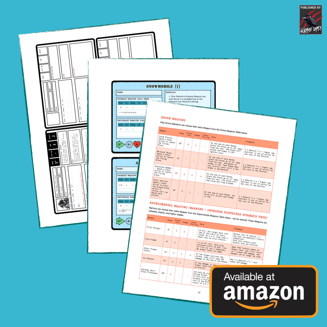 - New Weapons and Gear Tables: Arm your fighters with cutting-edge weaponry, including prototype energy weapons, cryo-based flamers, industrial tools repurposed for combat, and autonomous combat drones equipped for Arctic operations.
