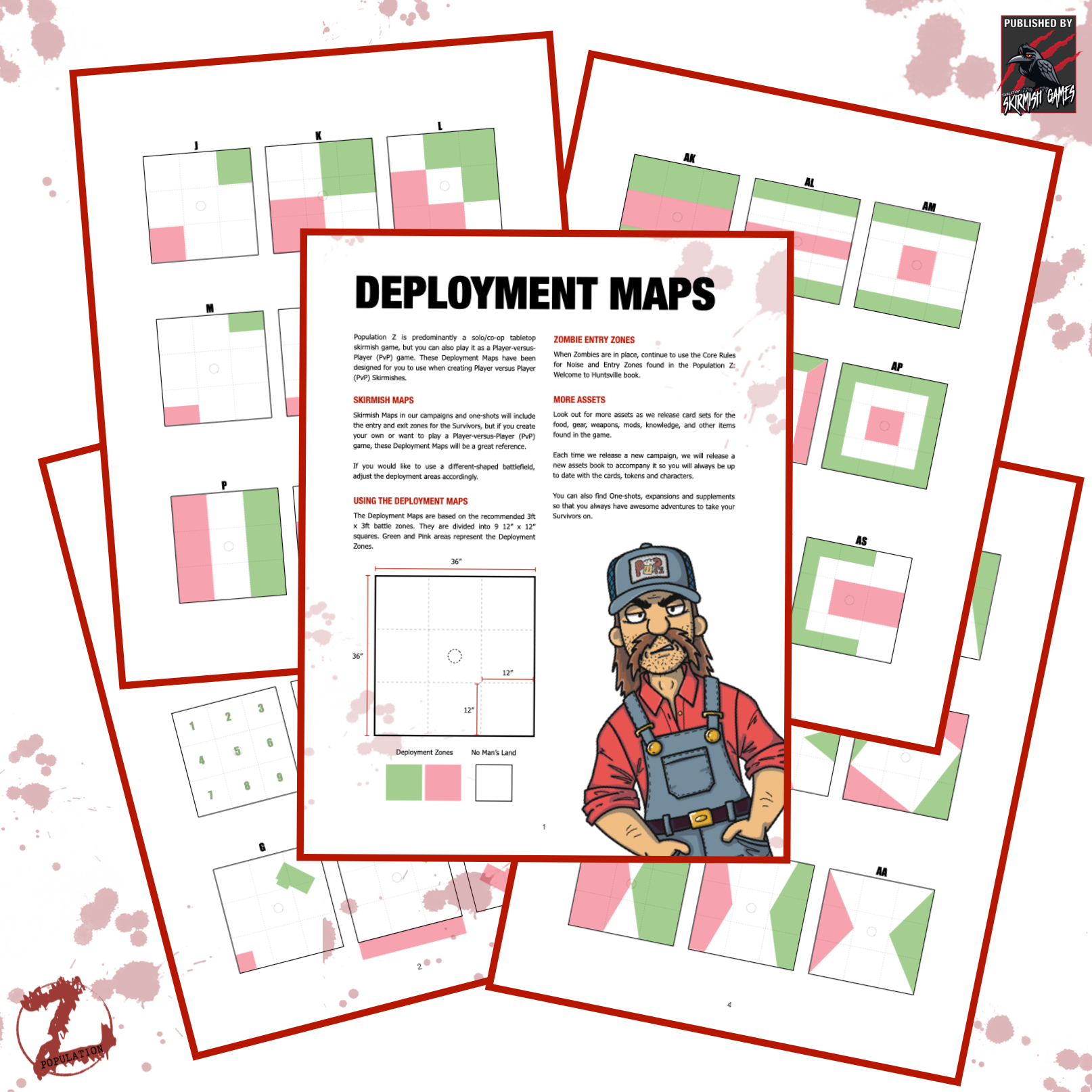 Population Z is predominantly a solo/co-op tabletop skirmish game, but you can also play it as a Player-versus-Player (PvP) game. These Deployment Maps have been designed for you to use when creating Player versus Player (PvP) Skirmishes.