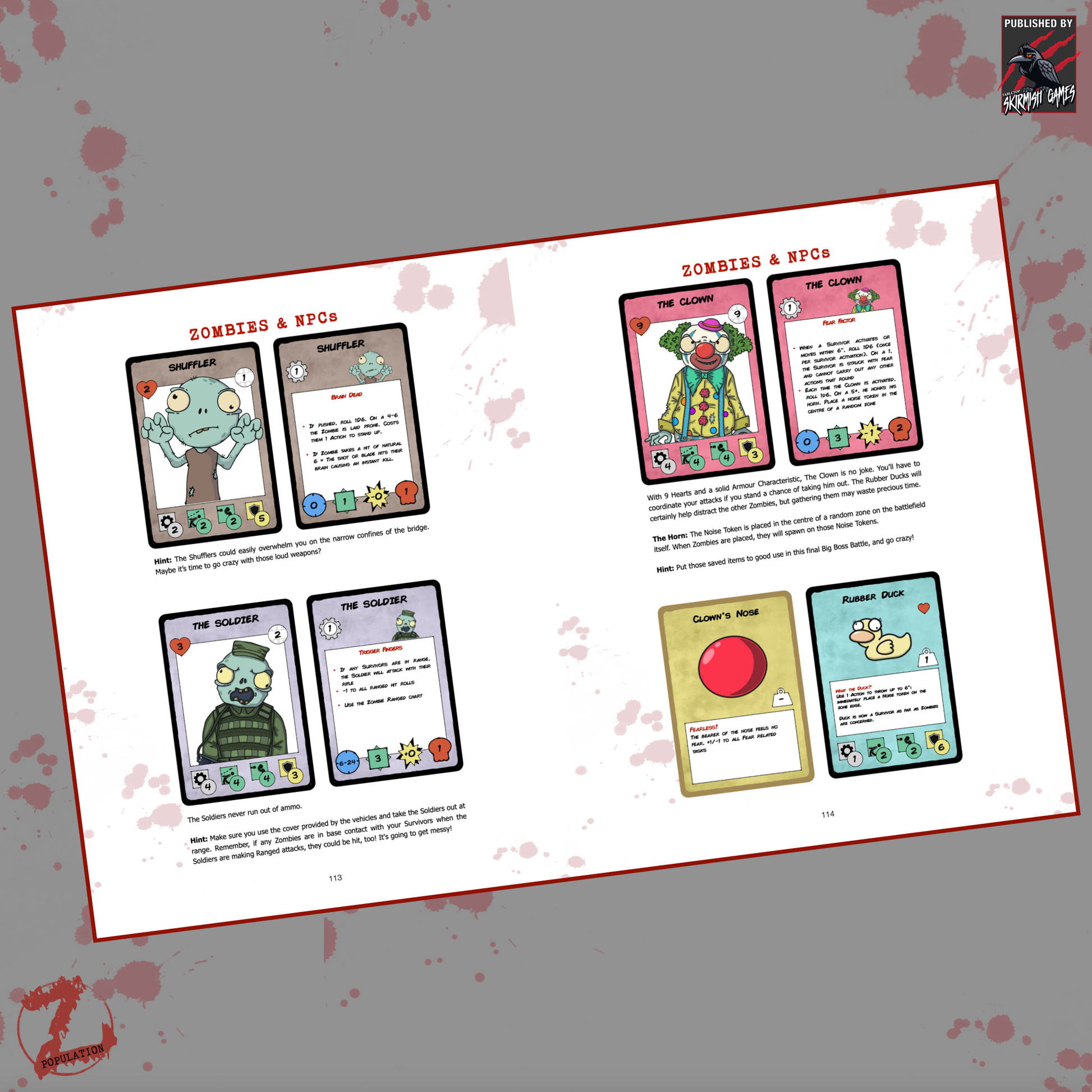 THANK YOU! - Thank you for taking an interest in Population Z. The game is heavily supported on our Tabletop Skirmish Games YouTube channel where you can watch how to play videos, guides, terrain craft, ask questions, and lots more. I can't wait to see you there!