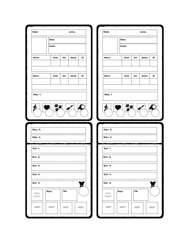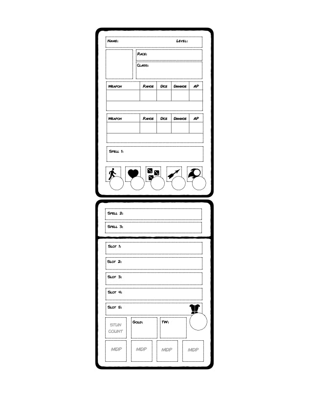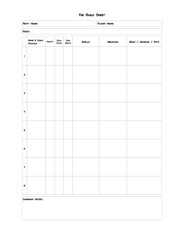 PDF: This product is a Free PDF containing the blank Warrior Cards/Party Sheets and Guild Sheets.