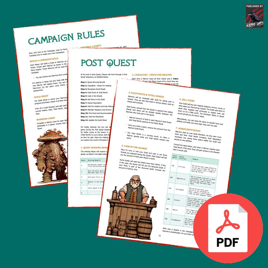 PDF: This product is the PDF Version of Rune Warriors: A Fantasy Tabletop Skirmish Game.