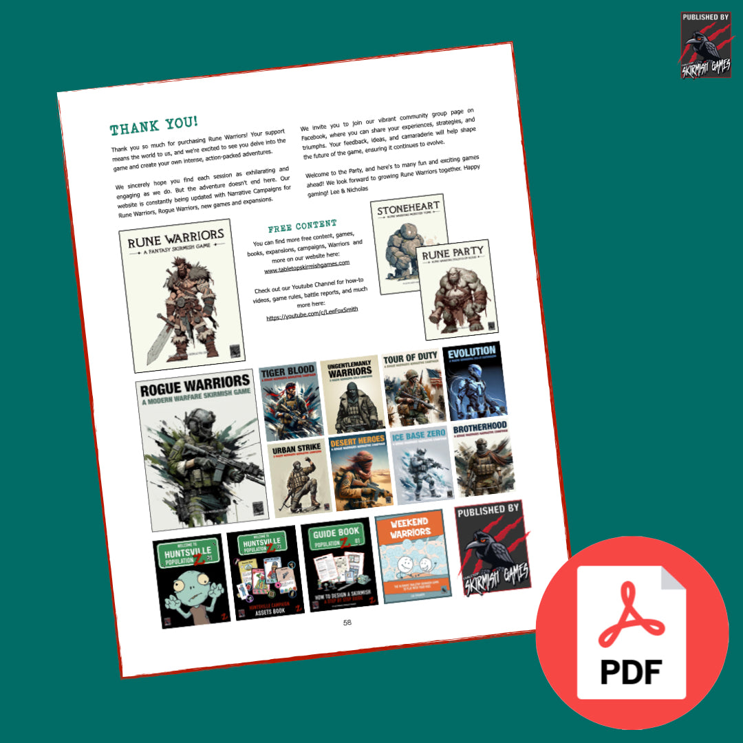THANK YOU! - Thank you for taking an interest in Rune Warriors. The game is heavily supported on our Tabletop Skirmish Games YouTube channel where you can watch how to play videos, guides, terrain craft, ask questions, and lots more. I can't wait to see you there!