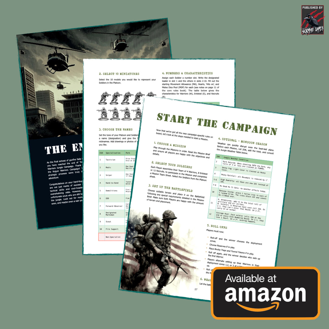 The expansion introduces new game mechanics that delve deep into the asymmetrical warfare typical of the Vietnam War. Players will find themselves outnumbered but not outsmarted, employing guerrilla tactics, setting up ambushes, and using the environment to their advantage. The new rules build on the core Rogue Warriors gameplay but introduce innovative elements such as: